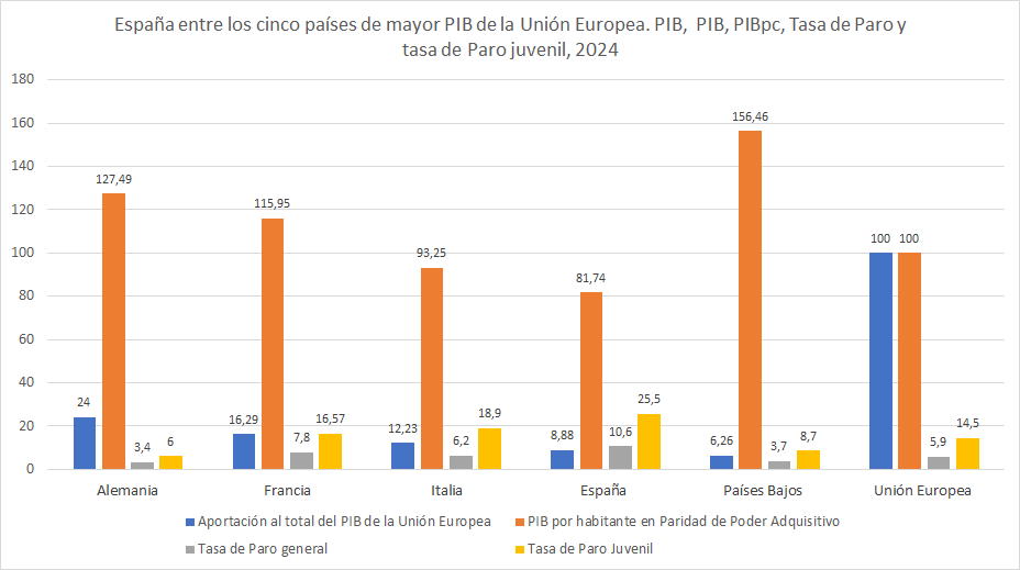Leer masESPAÑA EN LA UNION EUROPEA en 2024 ESPAÑA EN RELACION A LA MEDIA DE LA UNION EUROPEA EN 2024 ESPAÑA ES EL CUARTO PAÍS DE LA UNIÓN EUROPEA CON MÁS POBLACIÓN EN 2025, CON 49.128.297 HABITANTES, EL 10,95% del total de la Unión con 450,4 millones de habitantes. Primero Alemania 83,6 millones, segundo Francia 68,6, […]