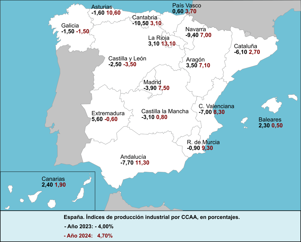 Leer masLA ESTRUCTURA PRODUCTIVA DE ESPAÑA Y LA REGION DE MURCIA 2023-2024. EL SECTOR INDUSTRIAL A NIVEL NACIONAL Y POR CCAA, años 2022-2024 Fuente., Informe anual de la Industria Alimentaria Española periodo 2023-2024. Ministerio de Agricultura, Pesca y Alimentación Cuadro A.- Aportaciones al VAB regional y nacional por Sectores y Actividades, año 2023 Sectores productivos […]