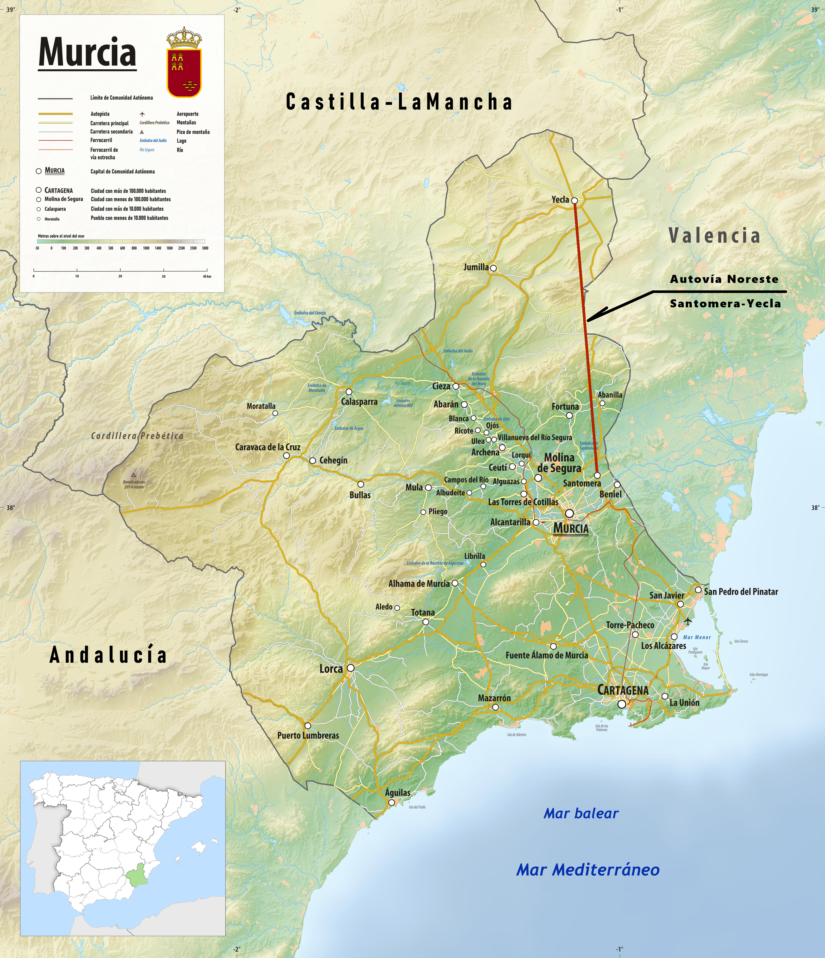 La realización de la autovía del Noreste, Yecla-Abanilla-Fortuna-Santomera, y su conexión directa con el mar Menor, se fue retrasando y esta gran área socioeconómica sigue sin conexión directa con el área metropolitana de Murcia, el mar Menor y con Cartagena y su puerto.